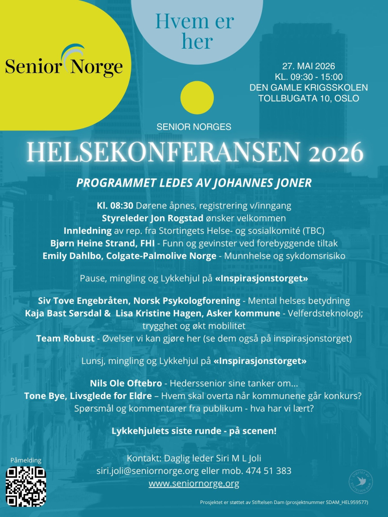 Dette kan gjelde deg som privatperson, helsesektoren, kommuner, frivillige organisasjoner og personer, bedrifter med bevissthet for sine senioransatte, helse- og aktivitetsaktører og ikke minst pårørende. Vi ønsker også våre politikere velkommen, her kan alle lære noe!